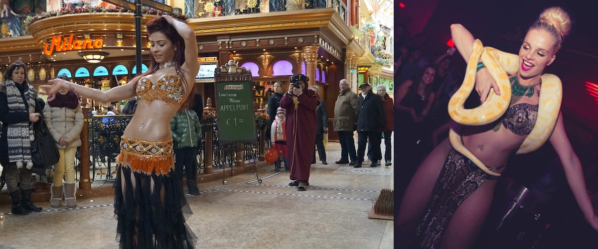 Danseres met de slang Waarzegster met eigen tent Oosters Decor Fotograaf voor feest